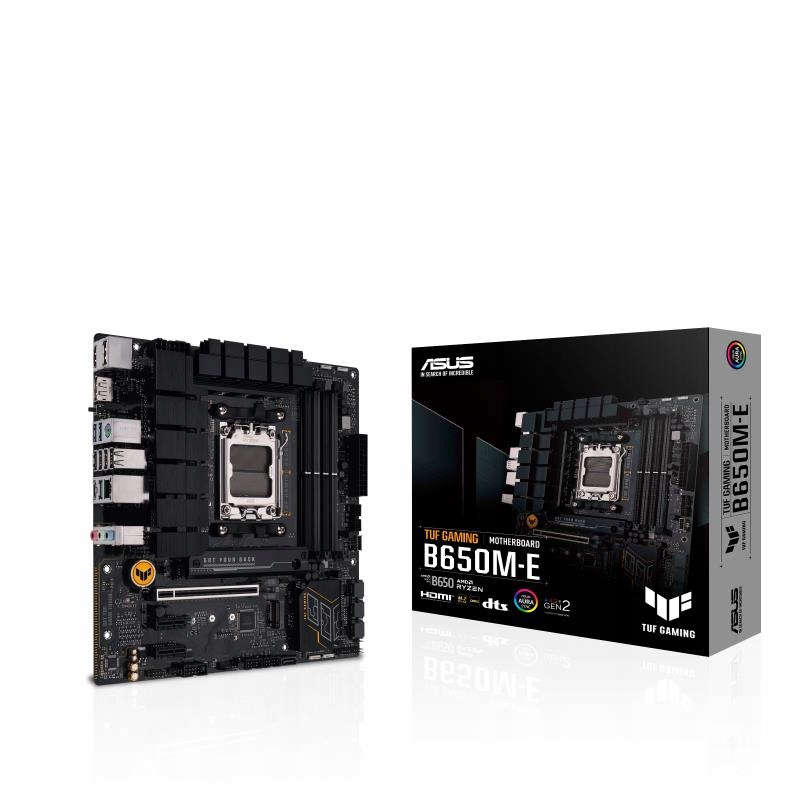ASUS TUF GAMING B650M-E jest wyposażony w chipset B650 dla procesorów AMD Ryzen z serii 7000 i oferuje wiele funkcji dla graczy. Ponieważ procesory serii Ryzen 7000 wymagają nowego gniazda ze względu na obsługę PCIe 5.0 i rozszerzone zasilanie, gniazdo AM600 (LGA 5) jest używane na płytach głównych z serii 1718.