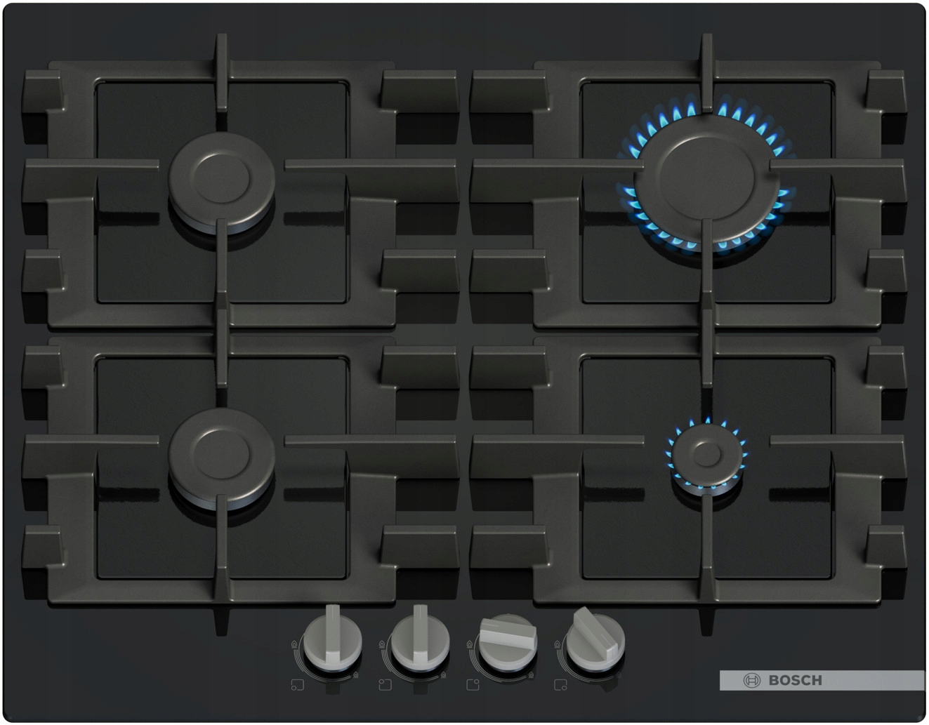 Płyta gazowa Bosch Serie 4 PNP6B6K40 Szkło 7,5kW Ruszty żeliwne Zapalarka