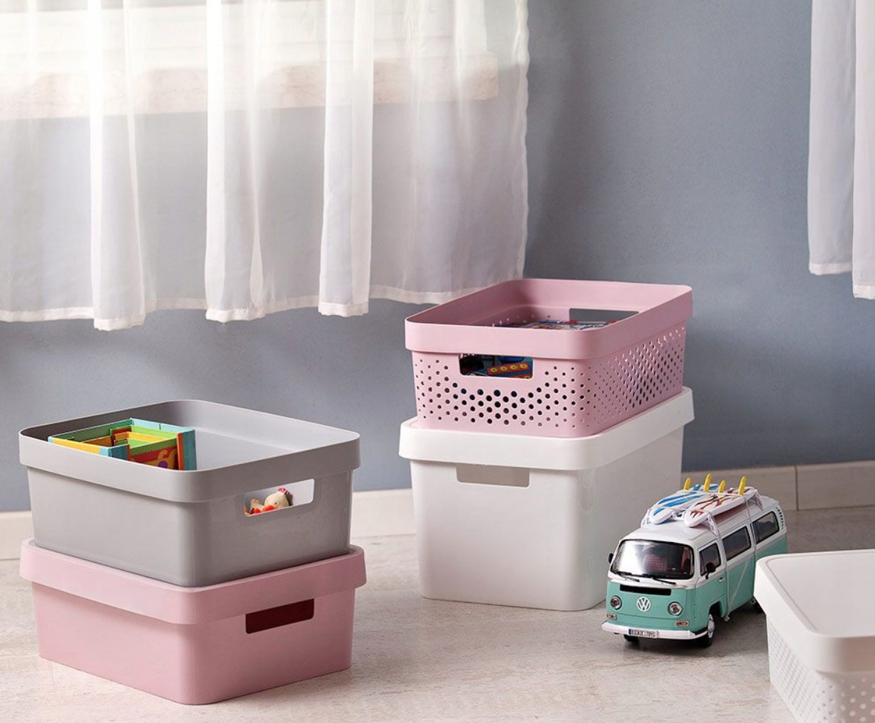 Pojemniki Infinity Recycled to uniwersalne rozwiązanie do przechowywania, które pozwala na łatwe uporządkowanie rzeczy w całym domu. Dzięki nowoczesnemu i minimalistycznemu wykończeniu, inspirowanemu stylem skandynawskim, pojemnik pasuje do każdego wystroju wnętrz.