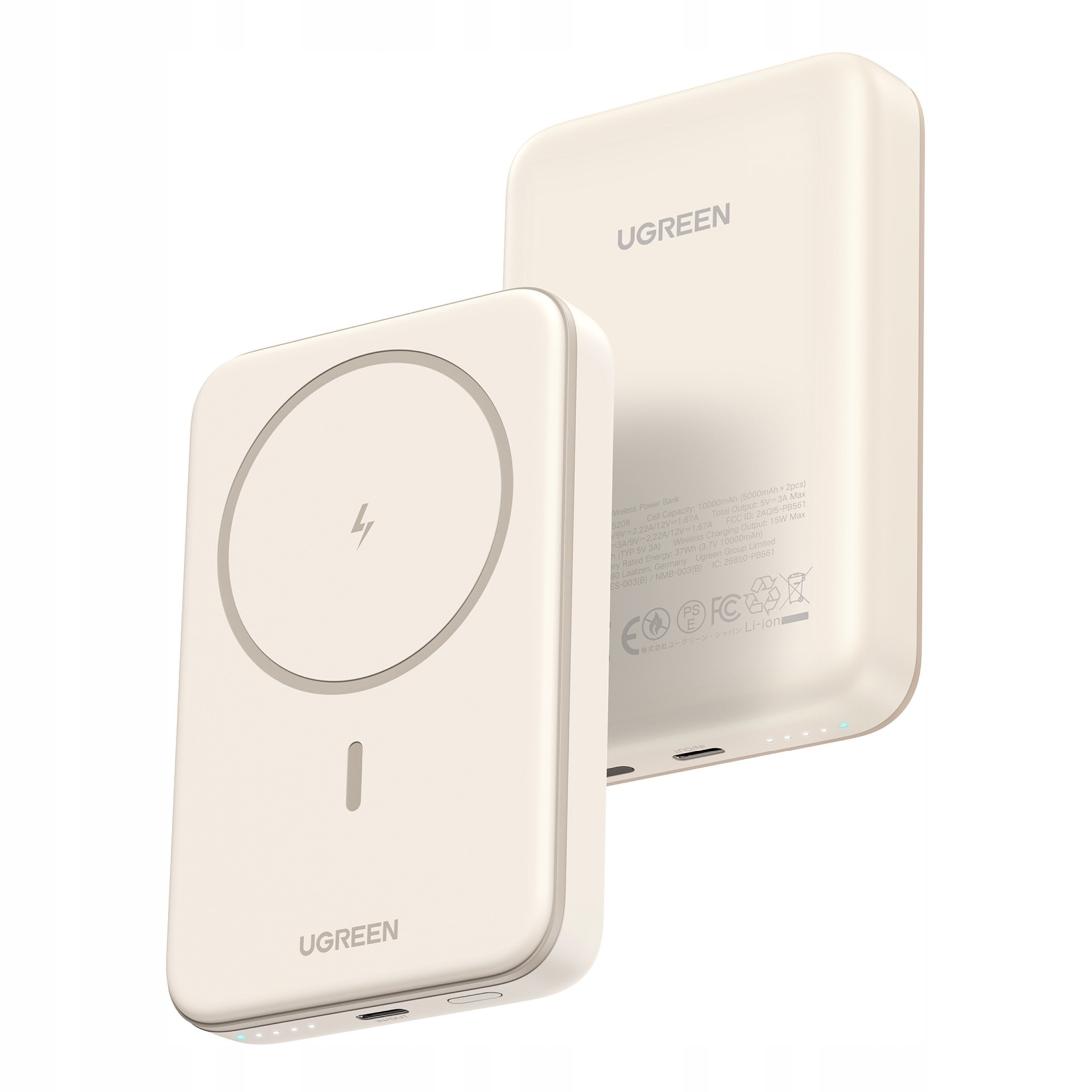 Powerbank magnetyczny Ugreen PB561 10000mAh 15W Beżowy