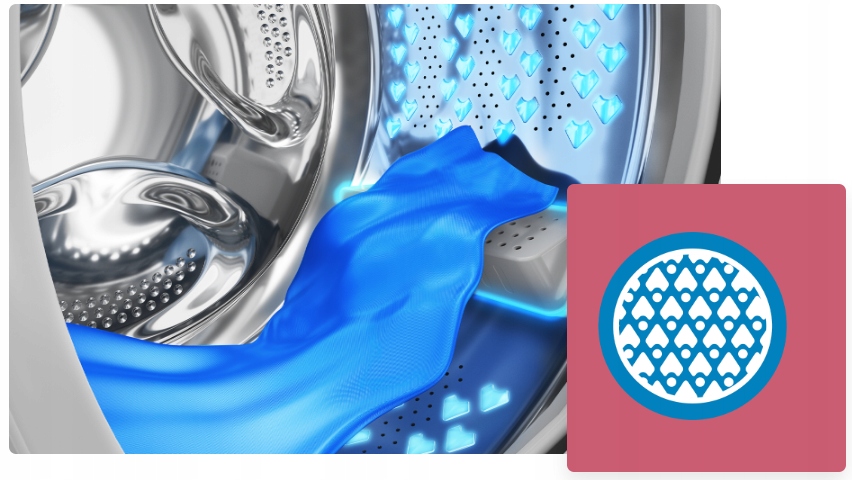 Falowy ruch bębna zapewnia delikatniejsze pranie i suszenie