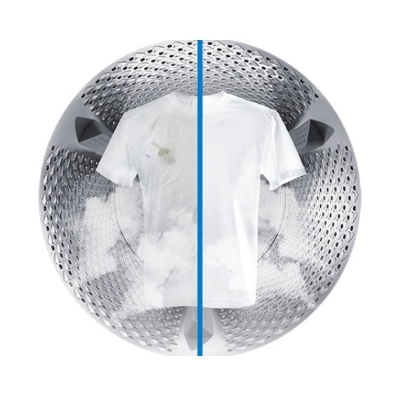 Technologia SteamCure wykorzystuje parę podczas prania dla jeszcze lepszego efektu. Para dodana na początku cyklu pomaga usuwać najtrudniejsze zabrudzenia, z kolei zaaplikowania na końcu zmniejsza zagniecenia. Wysoka temperatura pary pozwala trwale i efektywnie usunąć wszelkie plamy, bez konieczności stosowania dodatkowych detergentów.