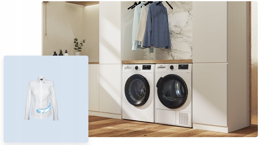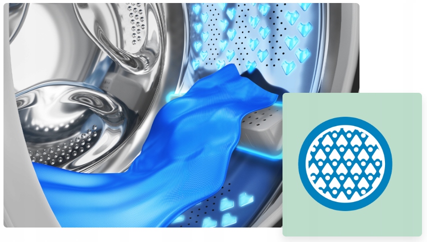 Falowy ruch bębna zapewnia delikatniejsze pranie i suszenie
