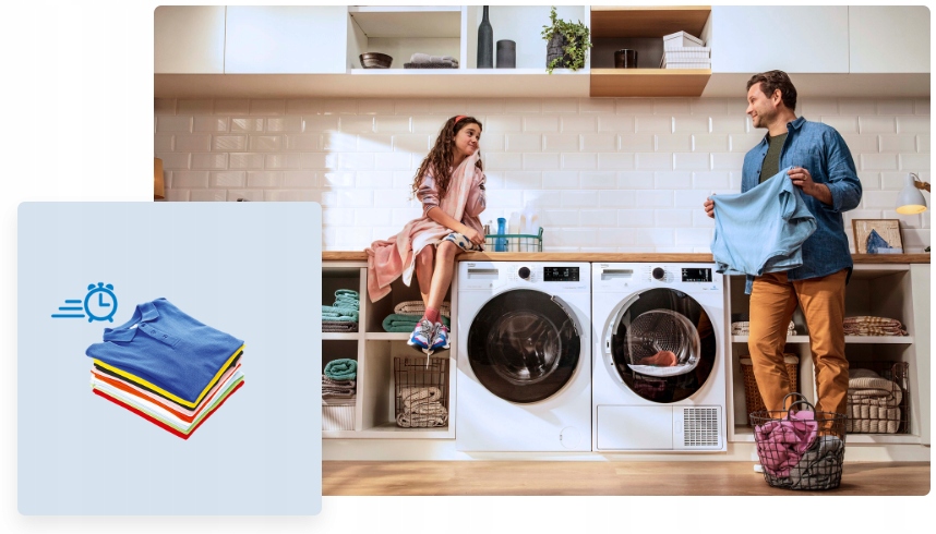 Jeśli uważasz, że życie jest zbyt krótkie, aby siedzieć i czekać, aż pralka skończy prać, oto coś, co pozwoli Ci odzyskać czas. Funkcja Fast+ automatycznie wykrywa rodzaj tkaniny i ilość prania, optymalizując program prania i pozwalając na skrócenie czasu trwania programu nawet o 55%* za naciśnięciem jednego przycisku. * Przetestowano w laboratoriach firmy