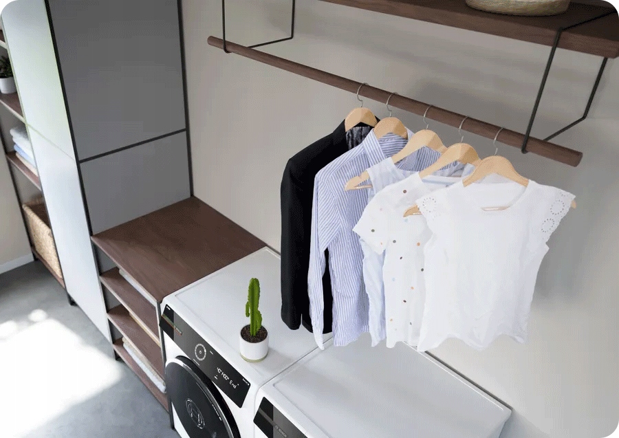 - Programy z aplikacji HomeConnect: Automatyczny delikatny, Pierze/Puch, Drum clean with reminder, Koszule/Bluzki, Jeans/Ciemne kolory, Sport/Fitness