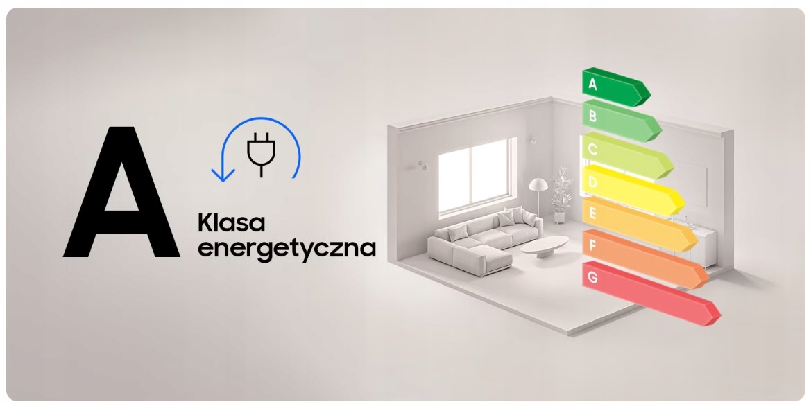 Oszczędzaj energię, nie rezygnując z efektywnego prania. Zgodnie z aktualnym oznaczeniem klas efektywności energetycznej, pralka posiada klasę – A. Zaawansowane technologie inteligentnie poprawiają wydajność prania, jednocześnie zmniejszając zużycie energii bez utraty funkcjonalności.