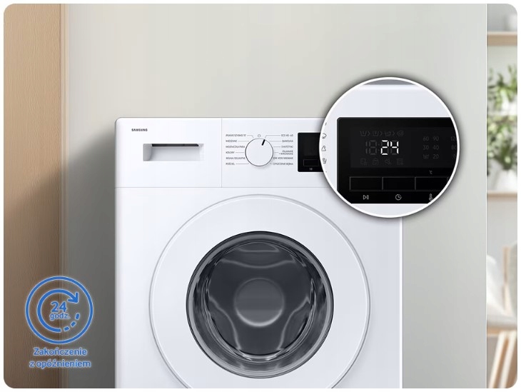 Funkcja ta pozwala nastawić pranie o dowolnej porze z opóźnieniem nawet do 24 godzin. Możesz np. wstawić pranie rano przed wyjściem do pracy i ustawić czas tak, aby cykl zakończył się, gdy wrócisz do domu. W efekcie masz pewność, że po skończeniu cyklu ubrania nie będą zbyt długo leżały w bębnie, co oznacza, że będą pięknie, świeżo pachnieć.
