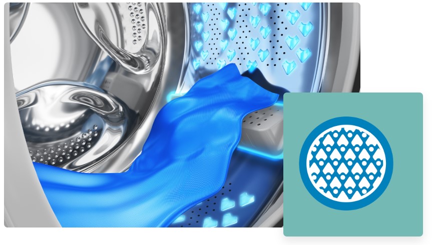 Falowy ruch bębna zapewnia delikatniejsze pranie i suszenie