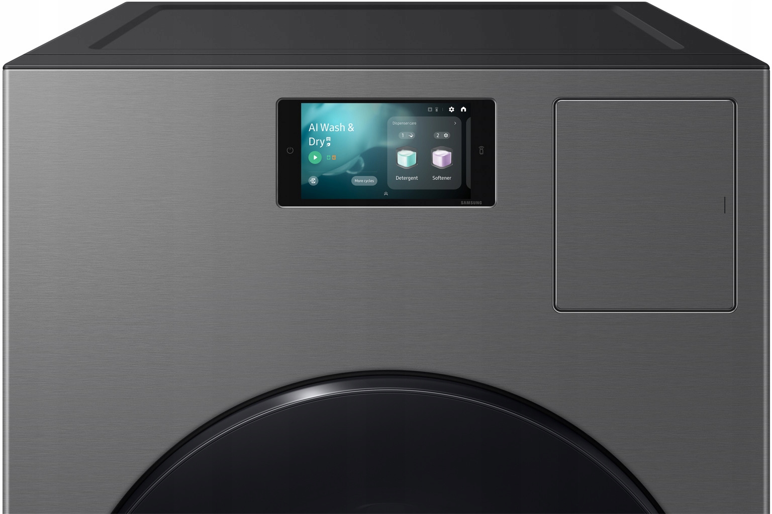 Pralko-suszarka Samsung Bespoke AI Combo WD18DB8995BZT2 w eleganckim kolorze ciemnej stali. To urządzenie 2w1 łączy funkcje prania i suszenia, oferując niezrównaną wygodę i oszczędność miejsca. Dzięki innowacyjnemu programowi Super Szybki, Twoje ubrania będą czyste i suche w rekordowym czasie. Technologia Optymalne Pranie i Suszenie AI™ automatycznie dostosowuje parametry cyklu, zapewniając doskonałe rezultaty przy każdym użyciu.