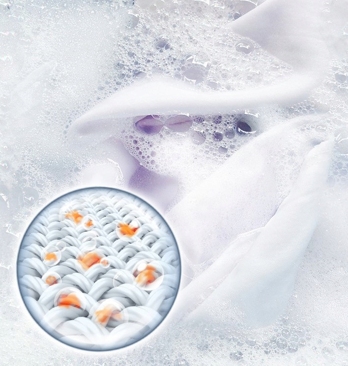 Funkcja Aktywnej piany pozwoli Ci usunąć nawet najtrudniejsze zabrudzenia. Pomaga pozbyć się nawet bardzo uciążliwych, zaschniętych plam np. z wina, kawy, herbaty, trawy i produktów do makijażu. Przed rozpoczęciem wybranego programu ubrania są namaczane w Aktywnej pianie, która głęboko wnika w tkaniny zmiękczając zabrudzenia aby łatwiej i szybciej usunąć je podczas cyklu prania.