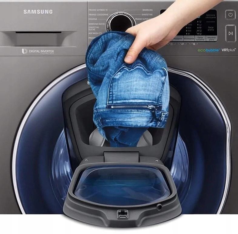 Zapominane ubrania to już nie problem. Dodatkowe drzwi AddWash™ umożliwiają dodawanie zapomnianych ubrań na każdym etapie prania. Co więcej ubrania wyprane ręcznie mogą być dorzucone tylko na czas płukania i wirowania. Funkcja ta ułatwia również wietrzenie wnętrza pralki, bez konieczności otwierania głównych drzwi pralki.