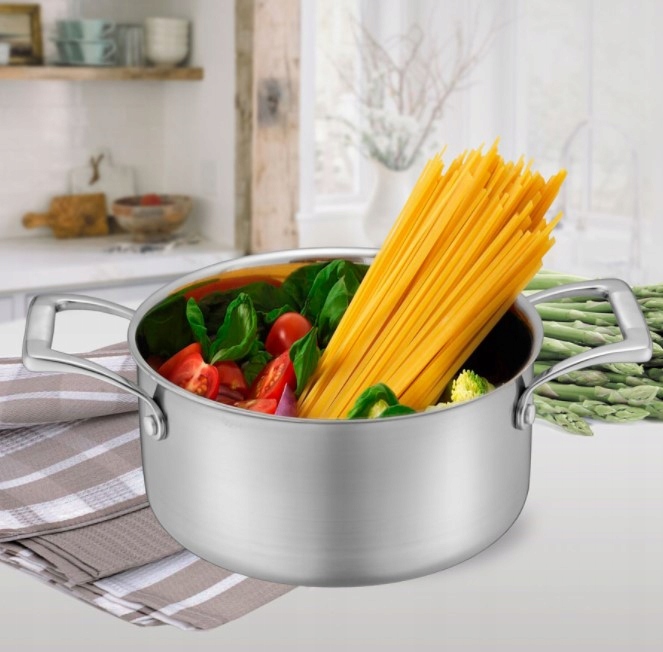 - warstwa zewnętrzna /stal nierdzewna 430/ - z magnetycznymi właściwościami, odpowiednia do stosowania na wszystkich źródłach ciepła