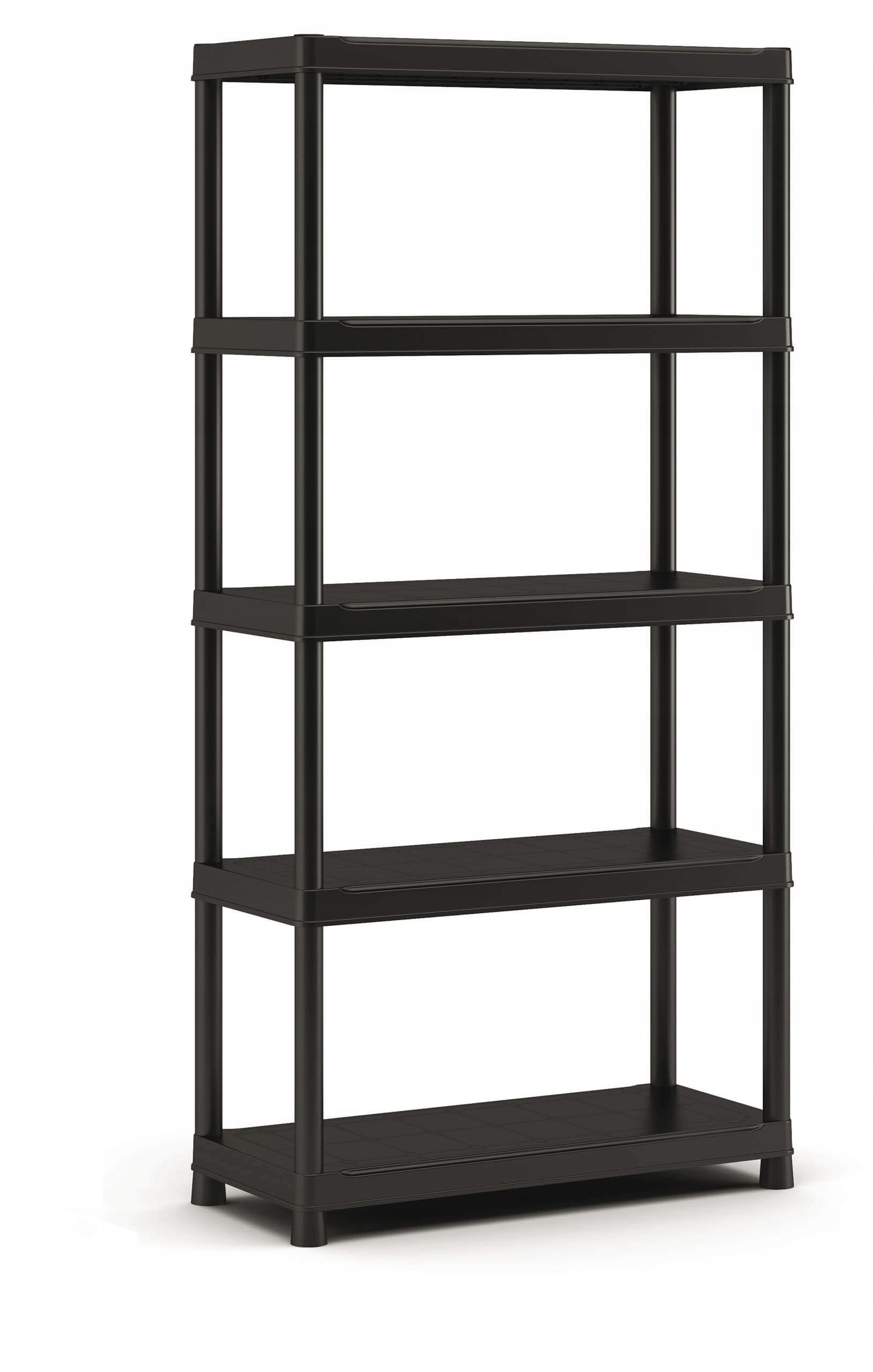 Solidna konstrukcja wykonana została z najwyższej jakości tworzywa sztucznego, co jest gwarancją wieloletniej trwałości mebla. Regał 90/40 5-półkowy Plus wyposażony jest w pięć praktycznych i dodatkowo wzmocnionych półek - każda o maksymalnej ładowności do 55 kg. Co ważne, regał można zamontować w pozycji pionowej bądź poziomej, dostosowując go do indywidualnych potrzeb. Całość konstrukcji osadzona została na delikatnie podniesionych nogach, co znacznie ułatwia utrzymanie nienagannej czystości pod meblem. Wyróżniający się uniwersalnym wzornictwem idealnie wkomponuje się w charakter każdego wnętrza. Produkt posiada certyfikat bezpieczeństwa TUV Sud GS.Regał 90/40 5-półkoey Plus zachwyca minimalistycznym designem oraz łatwym montażem, który nie wymaga użycia dodatkowych narzędzi