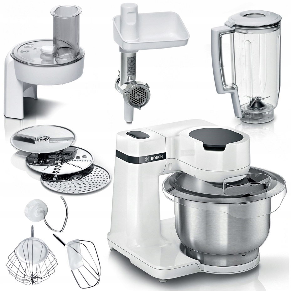 - Funkcje: Krojenie, mielenie, mieszanie, tarcie, ubijanie, wyrabianie ciasta