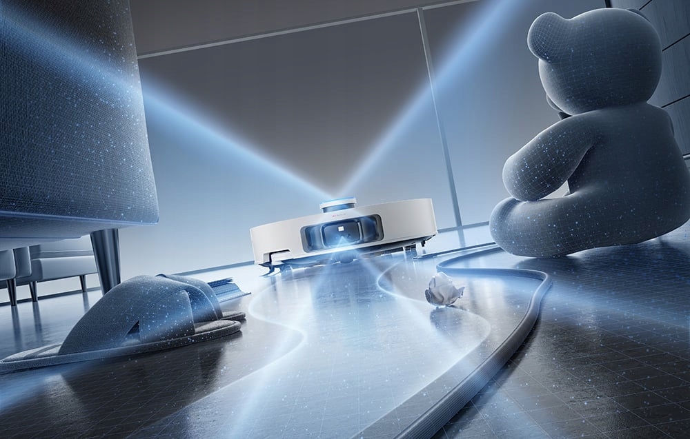 Robot dokładnie skanuje przestrzeń za pomocą technologii 3DAdapt™, inteligentnie identyfikując przeszkody i dostosowując trasę sprzątania. System VersaLift™ automatycznie reguluje wysokość modułu czujników DToF, co pozwala precyzyjnie mapować otoczenie oraz skutecznie docierać pod niskie meble, takie jak sofy czy łóżka. Wykorzystanie kamer RGB oraz algorytmów sztucznej inteligencji pozwala mu płynnie poruszać się w wąskich przejściach i omijać przeszkody z wyjątkową dokładnością. Dodatkowo system EasyLeap™ umożliwia pokonywanie progów o wysokości do 4 cm.