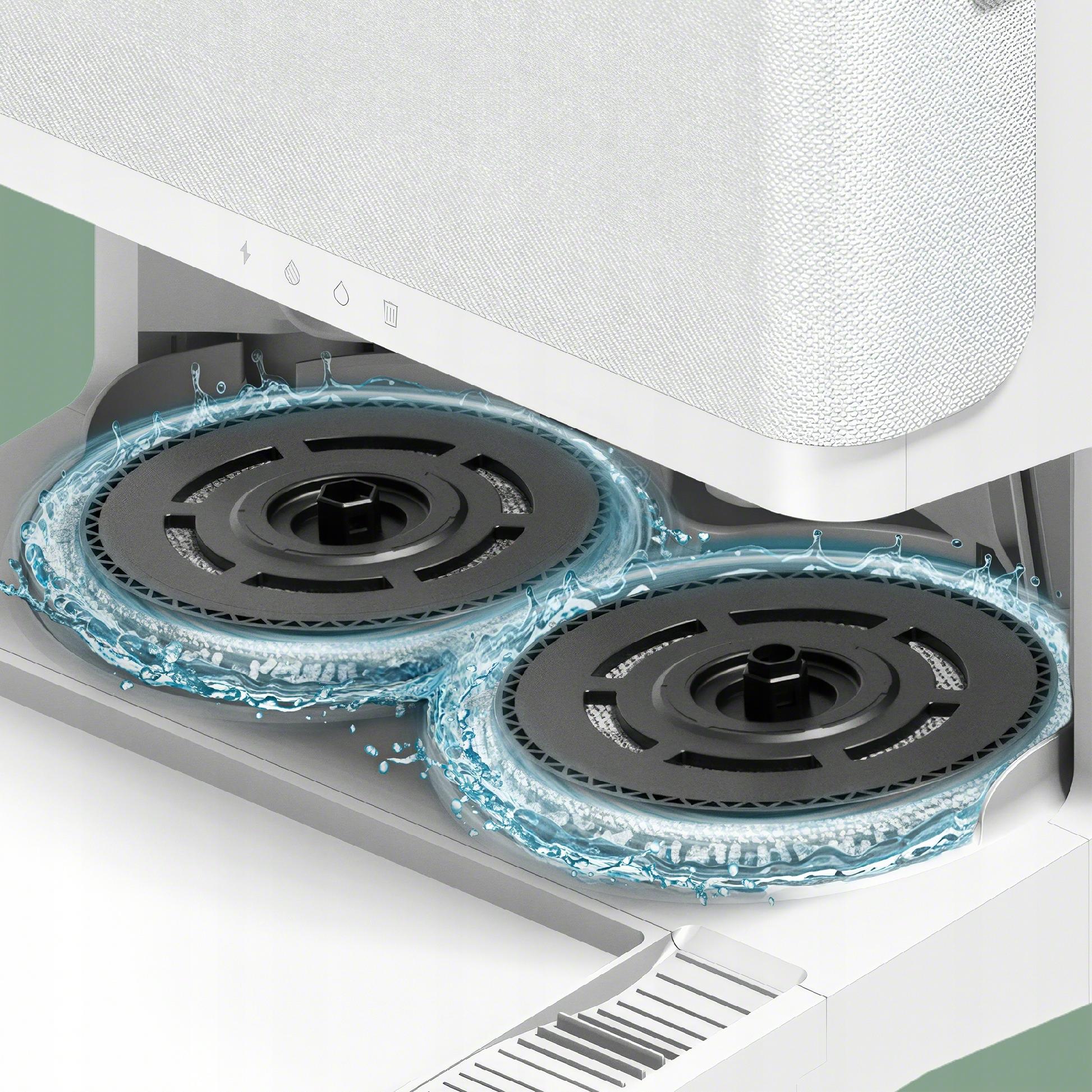 Obrotowe pady mopujące DualClean™ i technologia SmartScrub skutecznie usuwają zabrudzenia dzięki 2x intensywniejszemu szorowaniu plam i dociskaniu padów do sprzątanej powierzchni. Dla jeszcze lepszych efektów mopowania rekomendujemy stosowanie dedykowanego płynu czyszczący iRobot.