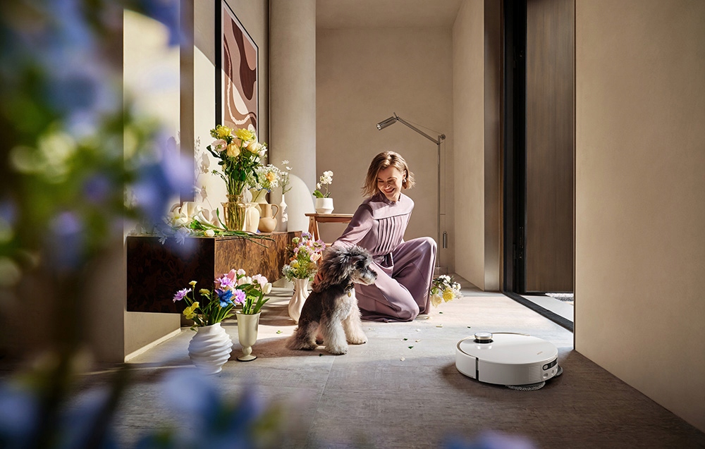 MOVA V50 Ultra Complete świetnie sprawdza się w domach, gdzie są psy, koty lub inne zwierzęta. Tworzy osobne strefy aktywności zwierząt i czyści je z większą dokładnością. Umożliwia też zdalne monitorowanie pupila przez aplikację oraz zapisuje nagrania z jego obecności. System potrafi również rozpoznać większe zabrudzenia, jak sierść czy resztki karmy, i aktywować tryb czyszczenia z większą mocą.