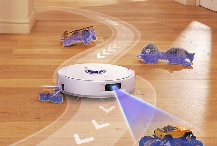 Narwal Freo X Ultra dysponuje innowacyjną opatentowaną technologią Układu Trzech Laserów. W przeciwieństwie do wielu robotów sprzątających na rynku, które mają tylko jeden laser do wykrywania jednego kierunku, jest on wyposażony w Przedni Strukturalny Czujnik Świetlny oraz Boczny Strukturalny Czujnik Świetlny do skanowania otoczenia we wszystkich kierunkach, tworząc ekskluzywną mapę 3D pokoju, aby opracować doskonałą trasę sprzątania. A to jeszcze nie wszystko, gdyż technologii Układu Trzech Laserów nie ograniczają warunki świetlne otoczenia i działa ona dobrze w każdym oświetleniu, pozwalając mu z łatwością omijać mniejsze przeszkody.