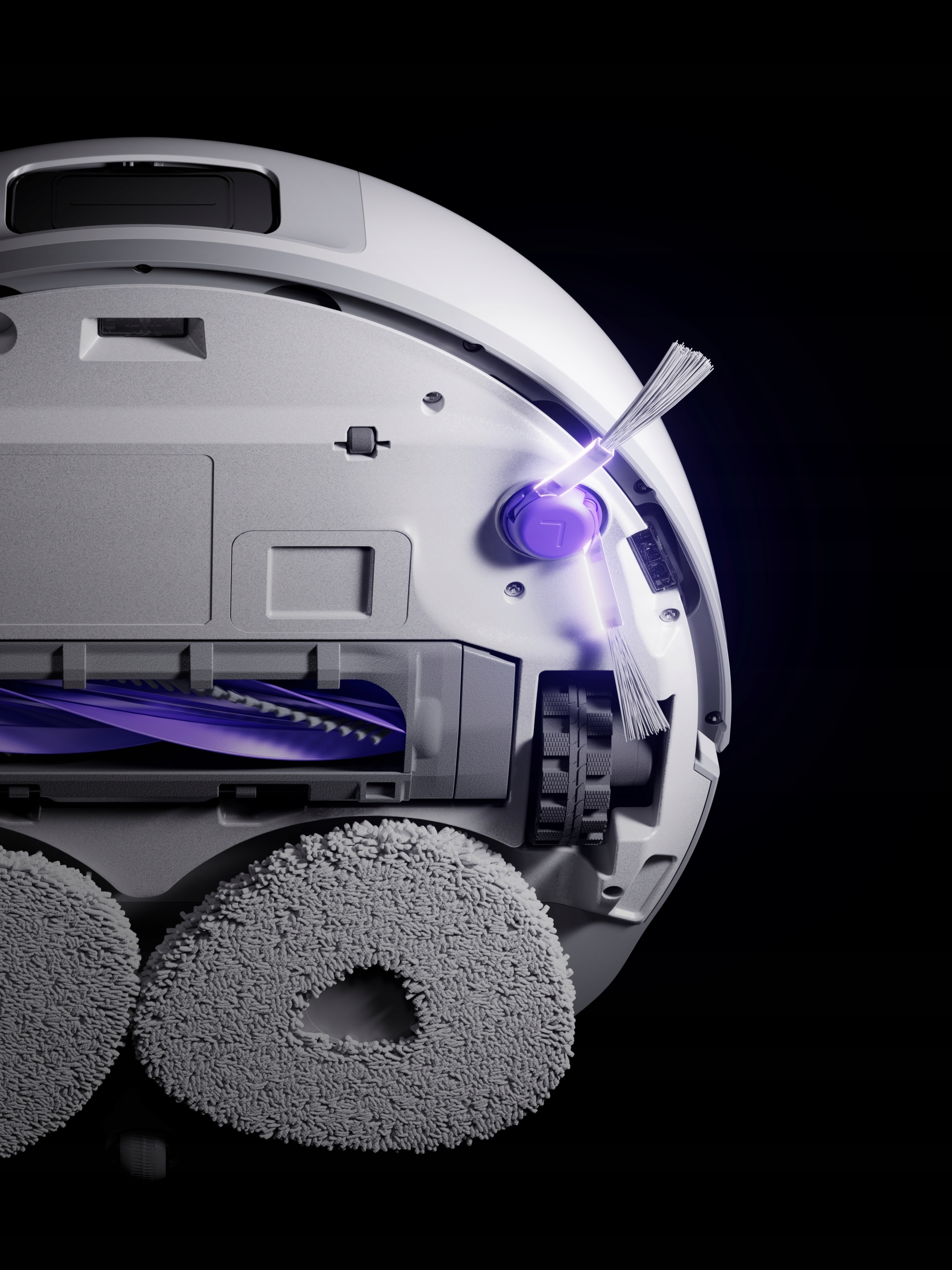 Unikalny projekt mopa w kształcie trójkąta Reuleaux dopasowuje się jeszcze lepiej do powierzchni podłogi dzięki 10-milimetrowemu nakładaniu się powierzchni czyszczenia. Dynamiczna strategia czyszczenia krawędzi automatycznie dostosowuje się do różnych sytuacji podczas sprzątania, w czasie rzeczywistym regulując wysięg i kąt obrotu mopa, aby zapewnić pełne pokrycie.