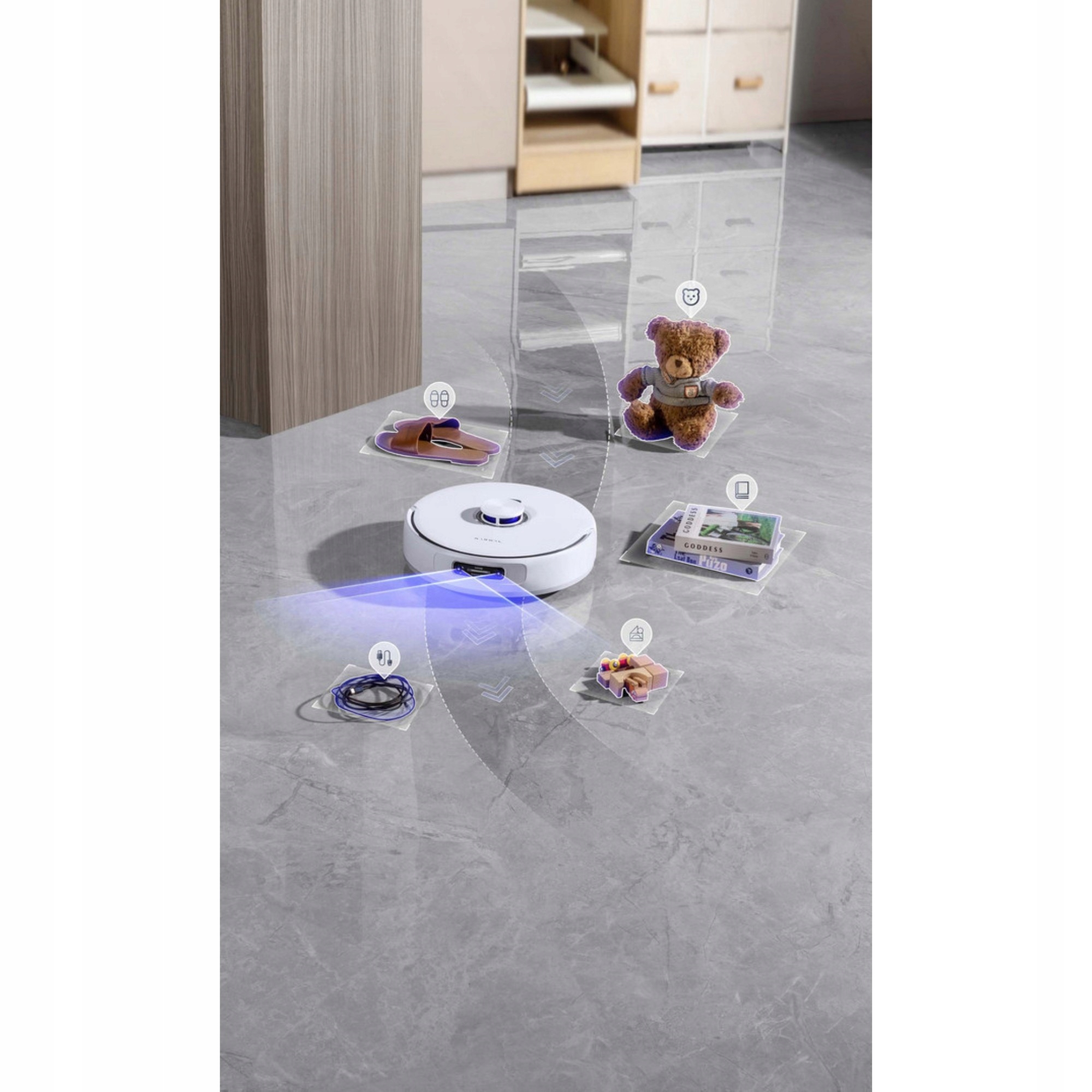 - Cechy dodatkowe: 45~75C dynamiczne mycie gorącą wodą|Adaptacyjny system głębokiego czyszczenia|Czujnik cząstek (zwalnianie i zwiększanie ssania oraz zatrzymywanie szczotki bocznej)|Elektrolizowana woda + jony srebra|Rozpoznawanie wizualne (zamiatanie, mopowanie i mycie w obiegu zamkniętym)|Trójkątne przedłużenie mopa EdgeReach|Wielofunkcyjna autonomiczna stacja bazowa|Wysokość kadłuba 109mm|Wysokość przejścia przez przeszkodę 20mm|Zaawansowany autonomiczny system VisionAI Pro
