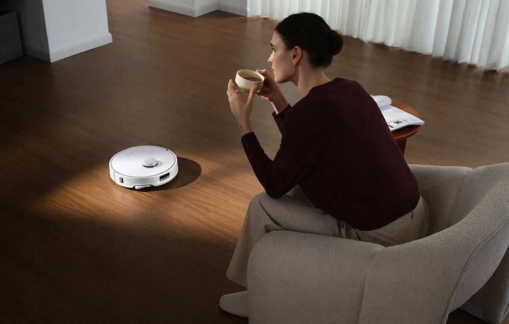Stacja dokująca Roborock Qrevo Curv ma gładki, zaokrąglony kształt z eleganckimi liniami, który dodaje jej miękkości i finezji. Obudowa doskonale komponuje się z wystrojem każdego wnętrza, podkreślając dbałość Roborock o stworzenie czystego i estetycznego otoczenia