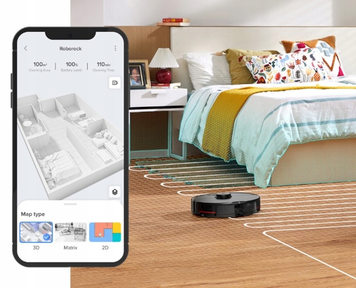 Dzięki danym pozyskanym przez moduł LiDAR, aplikacja precyzyjnie pokazuje układ domu, aby zidentyfikować sofy, łóżka, szafki pod telewizor, stołki, krzesła i stoły. Podczas sprzątania S7 MaxV oznacza w aplikacji meble, które rozpoznał. Potrzebujesz posprzątać wokół łóżka po leniwym śniadaniu? Po prostu dotknij modelu swojego łóżka w aplikacji Roborock.