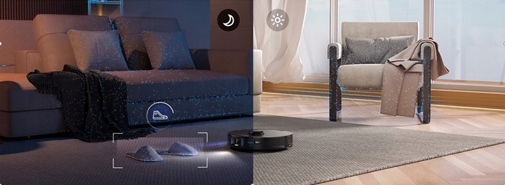 Podłogi w domach to tor przeszkód najeżony skarpetami, zabawkami, kubkami i nie tylko. Wykorzystujące światło strukturalne Skanowanie 3D dokładnie identyfikuje lokalizację i rozmiar przeszkód i zagrożeń, zarówno w jasnych, jak i ciemnych pomieszczeniach, zapewniając bezproblemowe sprzątanie o każdej porze.