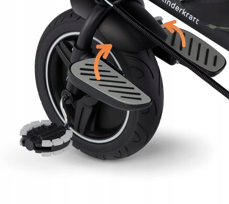 Gdy maluszek zmęczy się dziarskim pedałowaniem wcale nie trzeba brać go na ręce - wystarczy rozłożyć podnóżki, by dziecko mogło oprzeć wygodnie stopy. Nogi odpoczną, a malec wciąż będzie czerpał przyjemność z jazdy.