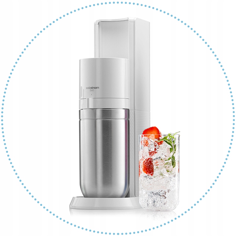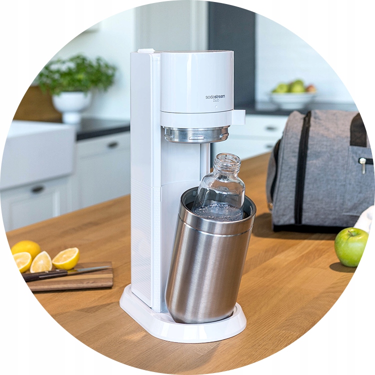 SodaStream DUO to wygodny w obsłudze i niezwykle elegancki biały saturator do gazowania wody. Nasyca wodę bąbelkami i tworzy cudowny bąbelkowy napój w zaledwie kilka sekund. SodaStream DUO pozwala bąbelkować wodę nie tylko w wielorazowych butelkach plastikowych, ale również w eleganckich, szklanych karafkach, w zależności od okazji.