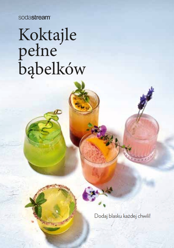 SodaStream zaprasza Cię do fascynującego świata drinków i koktajli, pełnego smaków, kolorów i orzeźwiających bąbelków. Baw się nimi, inspiruj, komponuj i sprawdź na ile sposobów możesz zaserwować świeżo gazowaną wodę! Zmień to, co wydaje się zwyczajne w kulinarne perełki, dbając jednocześnie o codzienne nawodnienie organizmu i środowisko naturalne.
