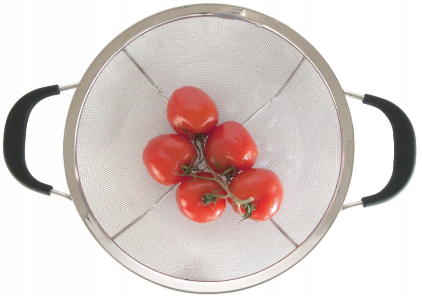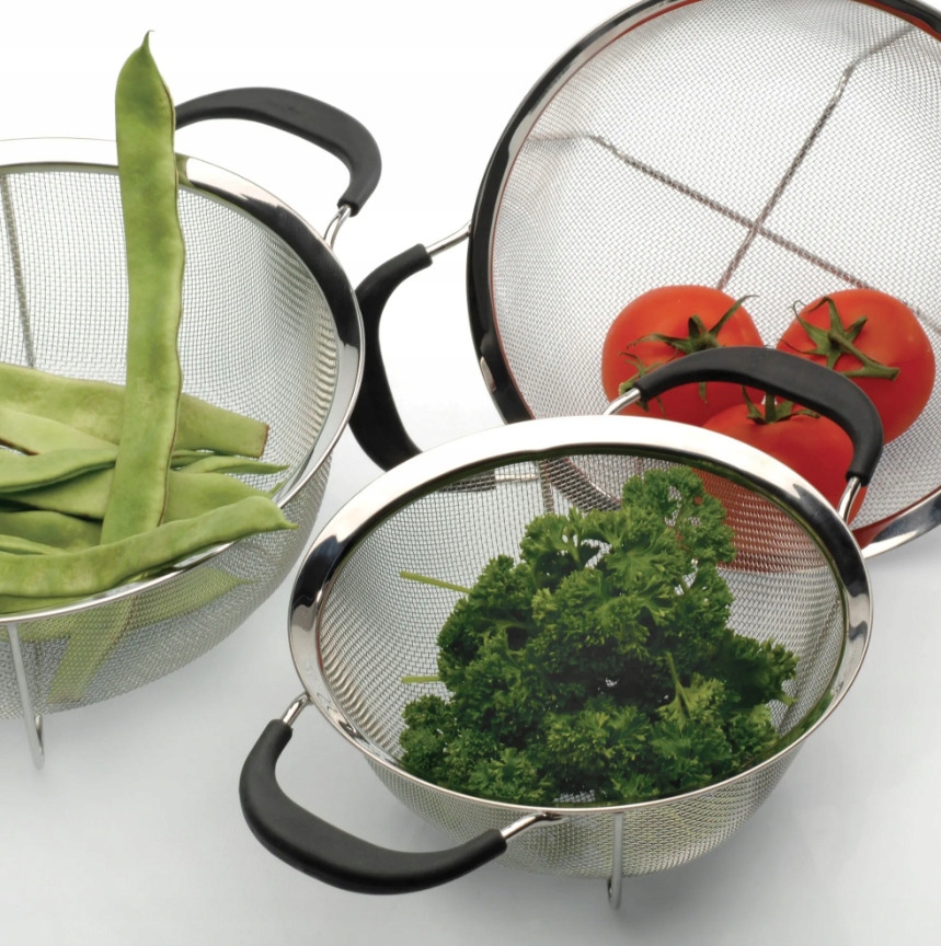 Partia świeżo gotowanego makaronu, porcja brukselki lub garść truskawek, cokolwiek przygotowujesz, w tym durszlaku ze stali nierdzewnej, odcedzisz lub umyjesz wszystko w mgnieniu oka. Korpus z drobnej siatki z łatwością odprowadza wodę lub tłuszcz z pożywienia i można go myć w zmywarce. Ponadto spawane krzyżowo stopki, zapewniają solidną podstawę, a rączkami pokryte miękką gumową powłoką gwarantują bezpieczeństwo i wygodę.