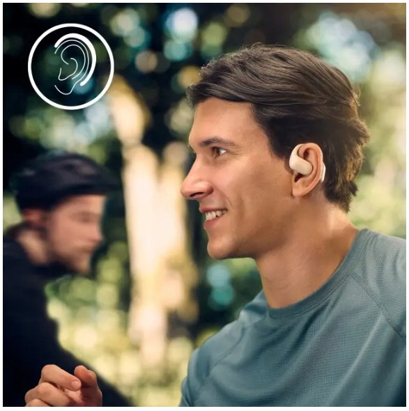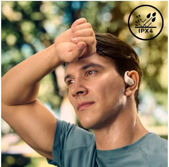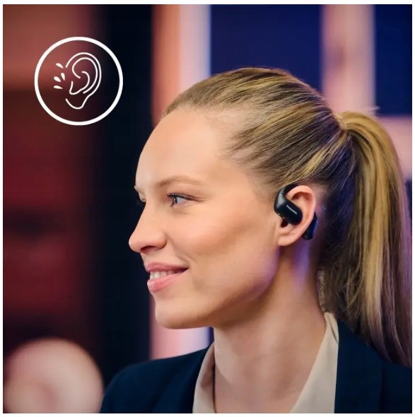 RB-F10 są lekkie i nie wchodzą do uszu – zamiast tego opierają się wygodnie jak okulary, dzięki elastycznym zaczepom. Szybko zapomnisz, że masz je na sobie. A stabilne mocowanie trzyma je pewnie na miejscu przez cały czas działania baterii – aż do 7 godzin.
