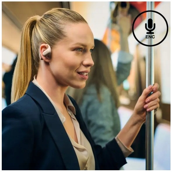 Otwarte douszne słuchawki bezprzewodowe (dwa mikrofony do rozmów i ENC, Bluetooth 5.4 i Multipoint ,wodoodporność IPX4 ), beżowe