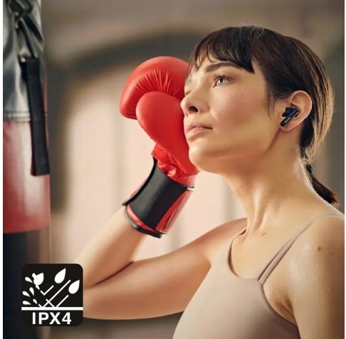 Wykonane zgodnie z normą wodoodporności IPX4, słuchawki B110W sprawdzają się zarówno w domu podczas intensywnego treningu na siłowni, jak i na zewnątrz w deszczu.