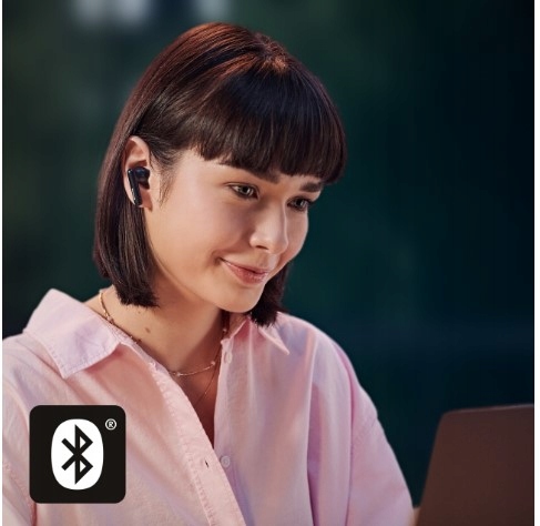 Technologia bezprzewodowa Bluetooth® 5.3 słuchawek B110W daje możliwość dłuższego działania o wyższej jakości działania podczas słuchania muzyki i obsługi połączeń.