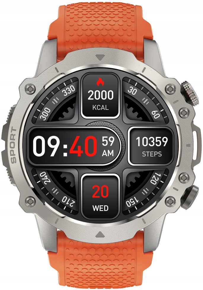 - Czujniki: Saturacja krwi, Czujnik tętna, Czujnik temperatury ciała, Pulsometr, Kompas