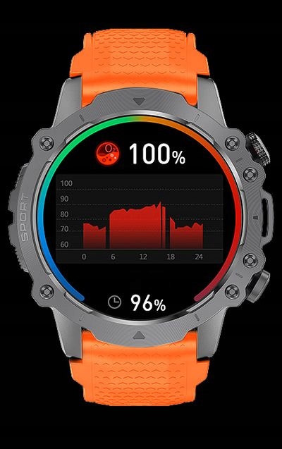Zegarek przypomni o konieczności wykonania badania nasycenia krwi tlenem w zależności od zmian wysokości. Jeśli wysiłek fizyczny przekroczy limit, zegarek będzie Cię chronić.