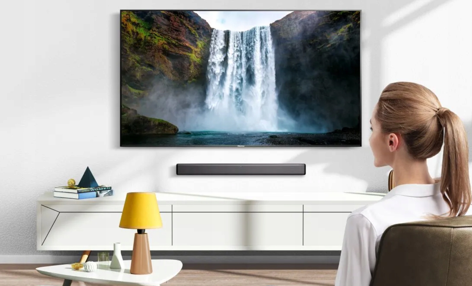 Dzięki HDMI OUT (ARC) Hisense Soundbar może łączyć się z telewizorami za pomocą jednego kabla HDMI, a także łączyć się bezprzewodowo przez Bluetooth. Możesz sterować obydwoma za pomocą jednego pilota. W kilka sekund z łatwością będziesz cieszyć się lepszym dźwiękiem z telewizora.