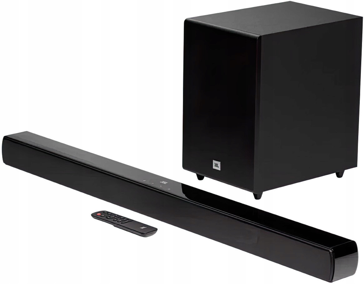 Soundbar JBL Cinema SB170 posiada moc 220 W, system Dolby Digital, kabel optyczny i HDMI ARC, cztery potężne przetworniki pełnozakresowe i bezprzewodowy subwoofer. Ciesz się imponującym, zrównoważonym dźwiękiem z mocnymi, głębokimi basami podczas oglądania filmów i słuchania muzyki. Dodatkowo, dzięki obsłudze technologii Bluetooth możesz bezprzewodowo odtwarzać ulubioną muzykę z dowolnego smartfona, tabletu lub laptopa, a połączenie za pomocą jednego kabla HDMI ARC zapewnia wygodne użytkowanie.