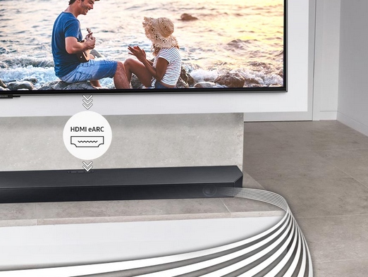 Soundbar HW-Q60C/EN to spektakularny dźwięk przestrzenny i urzekające brzmienie wzmocnione o wbudowany głośnik