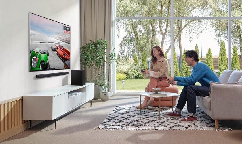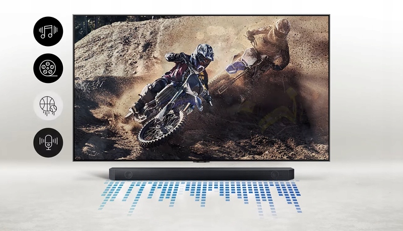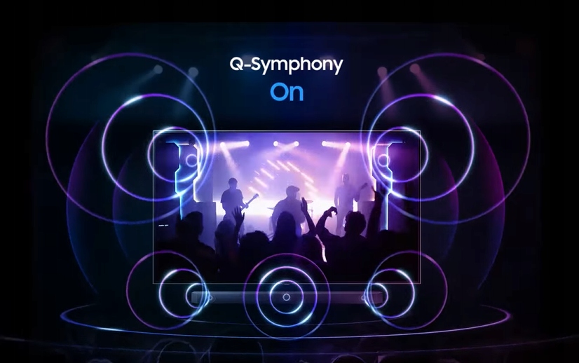 Otaczaj się harmonijnym współbrzmieniem dwóch urządzeń. Q-Symphony to jedna z najbardziej innowacyjnych funkcji Samsung, która umożliwia jednoczesną pracę głośników telewizora i soundbara, tworząc najwyższą synergię dźwięku. Unowocześniona Q-Symphony zapewnia zoptymalizowany dźwięk wszystkich kanałów, a sztuczna inteligencja remasteruje obiekty dźwiękowe wyodrębnione z oryginalnego wejścia audio. To wszystko dla jeszcze bardziej intensywnych wrażeń!