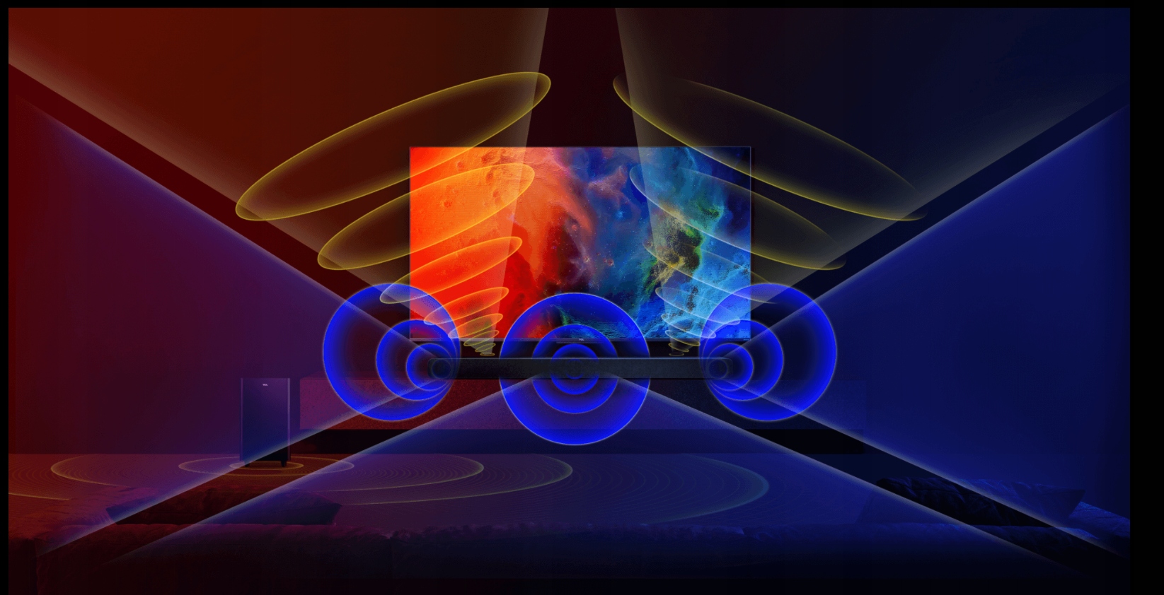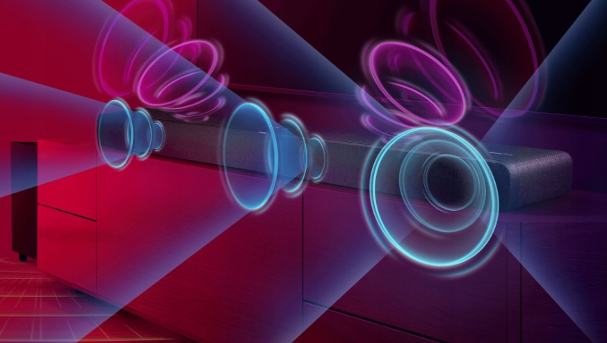 3.1.2 Kanały z dwoma głośnikami skierowanymi w górę wraz z potężnym bezprzewodowym subwooferem tworzą multiwymiarowy dźwięk.