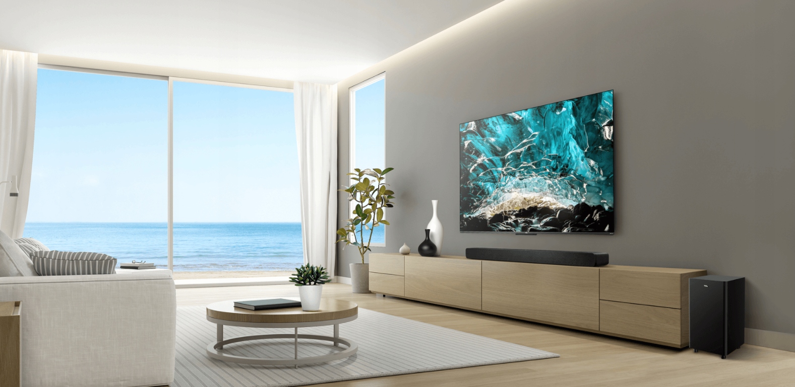 3.1.2 Soundar z Dolby Atmos o raz bezprzewodowym Subwooferem. Dwa głośniki skierowane w górę. 350 W maxymalna moc audio. Współpracuje z OK Google, Apple AirPlay oraz Amazon Alexa. Bezprzewodowa muzyka przez Bluetooth oraz WiFi