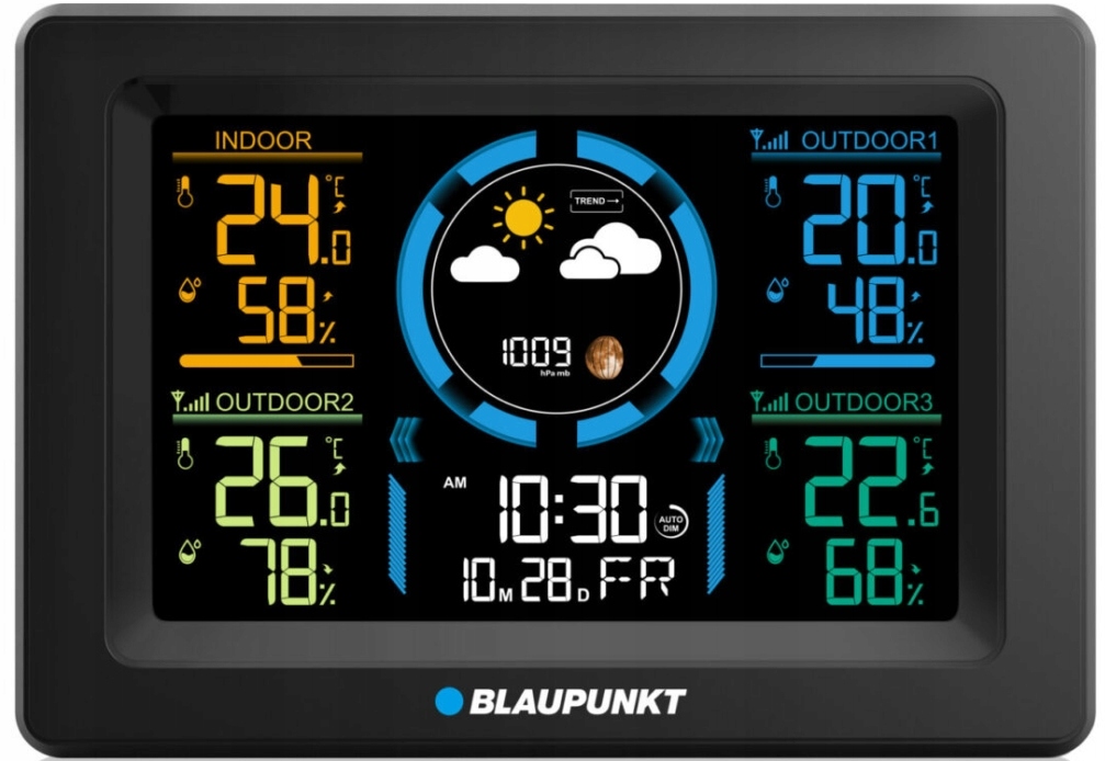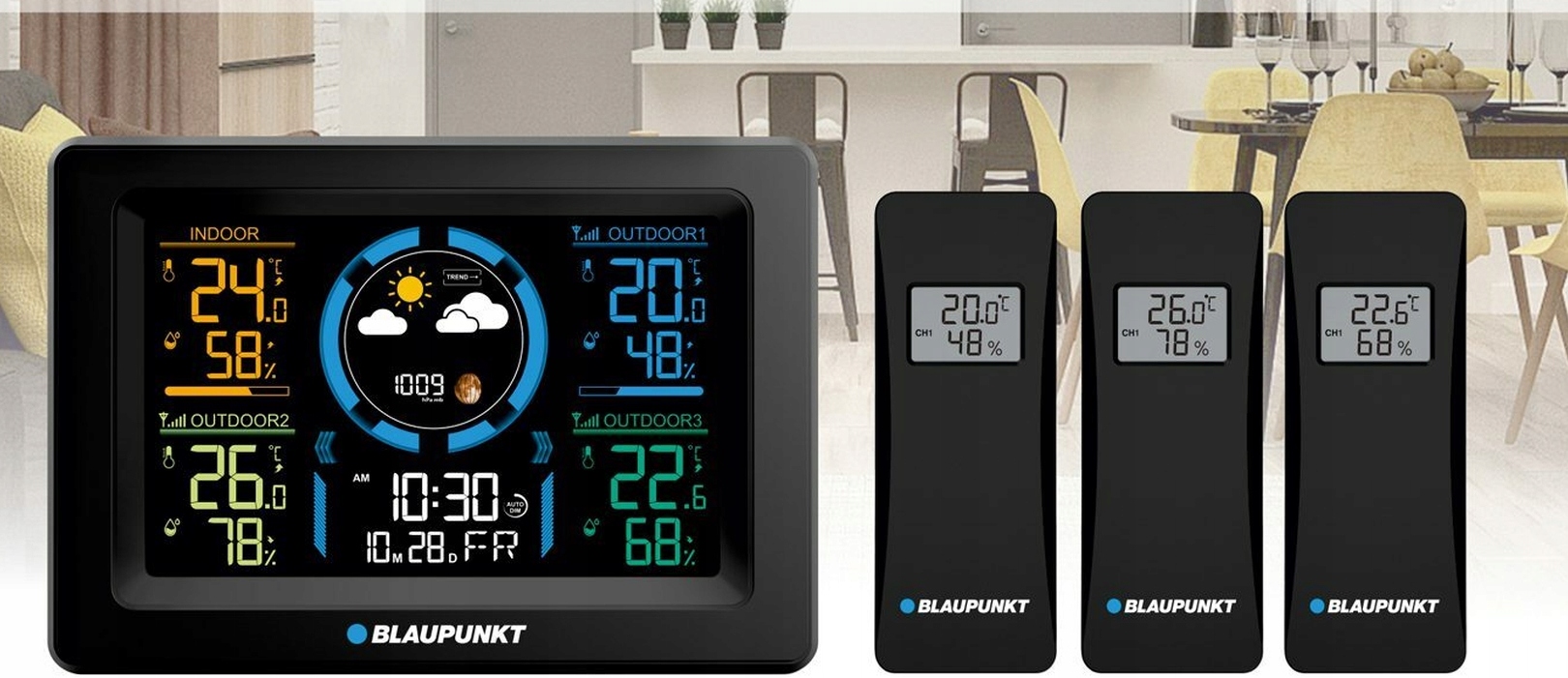 Stacja pogodowa Blaupunkt WS40BK 3 czujniki Zegar Temperatura Alarm LCD