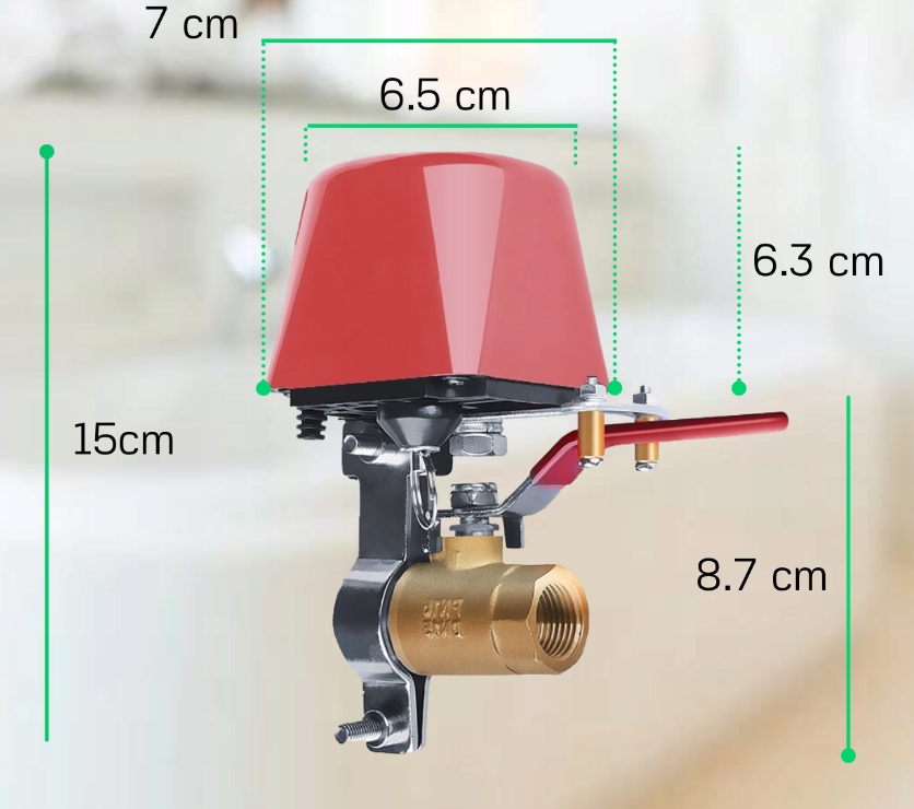 Łatwa instalacja, nie trzeba zmieniać istniejącego zaworu. Sterownik montuje się bezpośrednio na zaworze kulowym instalacji wodnej lub gazowej. Dzwignię zaworu kulowego należy umieścić pomiędzy Śruby mocowania zaworu.