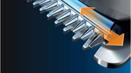 Uporaj się z każdym typem włosów dzięki zaawansowanej technologii DualCut: innowacyjny, dwustronny element tnący obcina włosy dwa razy szybciej niż jednostronne ostrza.