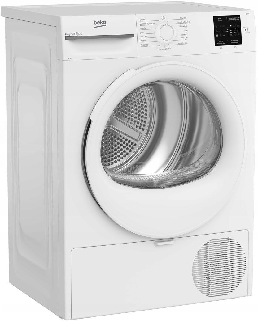 - Programy suszenia: Bawełna, Mix, Outdoor|Bawełna Eco, Syntetyki|Delikatny, Odświeżanie|Jeansy|koszule|Odzież puchowa|Pościel|Programy czasowe, Ręczniki|Suszenie higieniczne|Szybkie suszenie