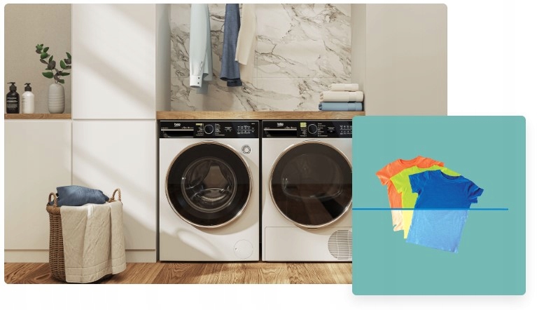 Suszarka automatyczna Beko BM3T48249PBDC o pojemności 8 kg wykorzystuje technologię pompy ciepła, zapewniającą efektywne i energooszczędne suszenie w klasie energetycznej A+++. Dzięki funkcji SteamCure™ z odświeżaniem parowym oraz bębnowi AquaWave® ubrania są delikatnie suszone, zachowując swoje kolory i strukturę.