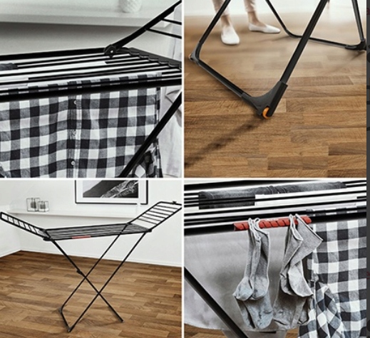 Wystarczy złożyć suszarkę, aby zajmowała mniej miejsca i była łatwiejsza w przechowywaniu.