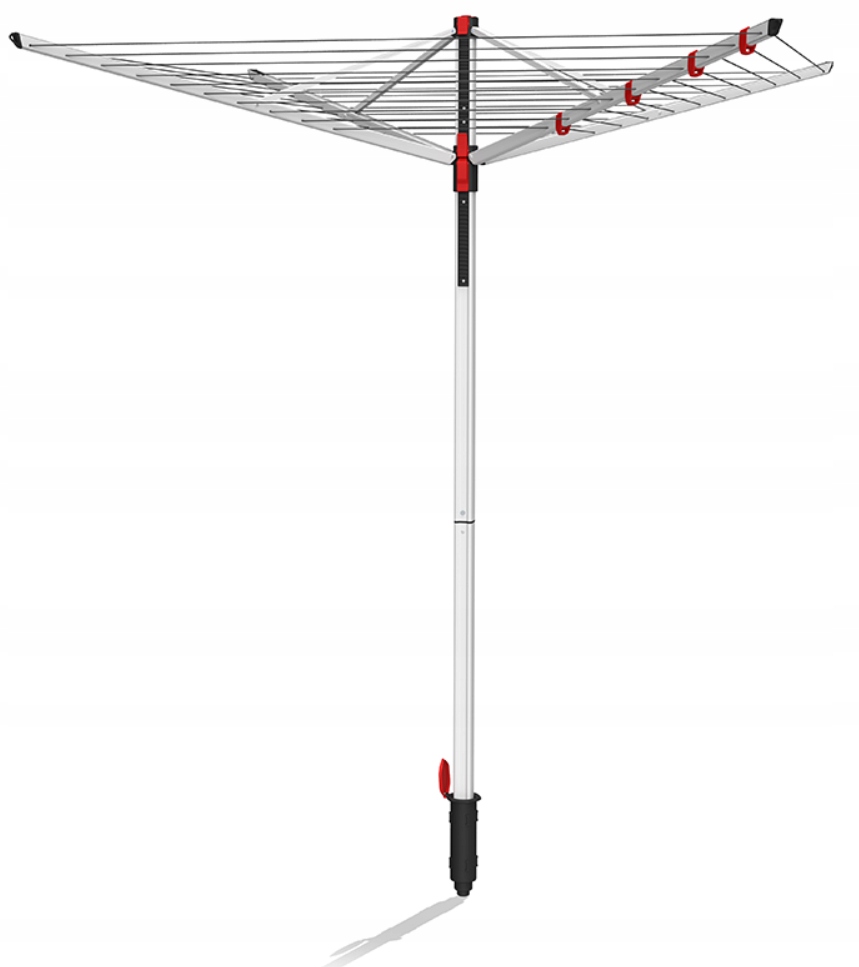 Aluminiowa konstrukcja sprawia, że obrotowa suszarka ogrodowa nie rdzewieje dzięki czemu jest bardziej trwała a pokrowiec w zestawie zapewnia dodatkową ochronę przed promieniami UV.